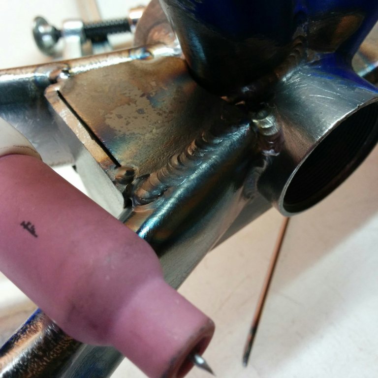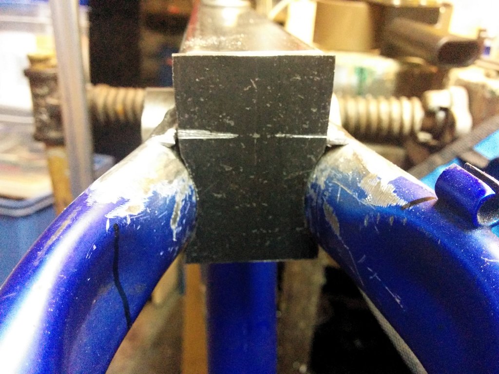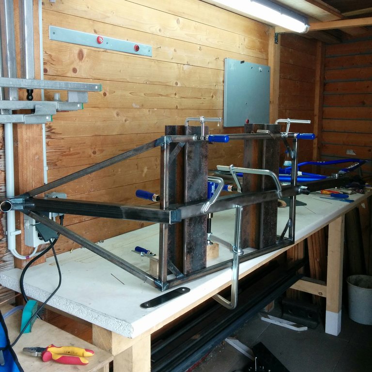 Das aus 40 × 40 mm Vierkant-Stahlrohr bestehende Unterrohr wird hinter dem Tretlager verschlossen.